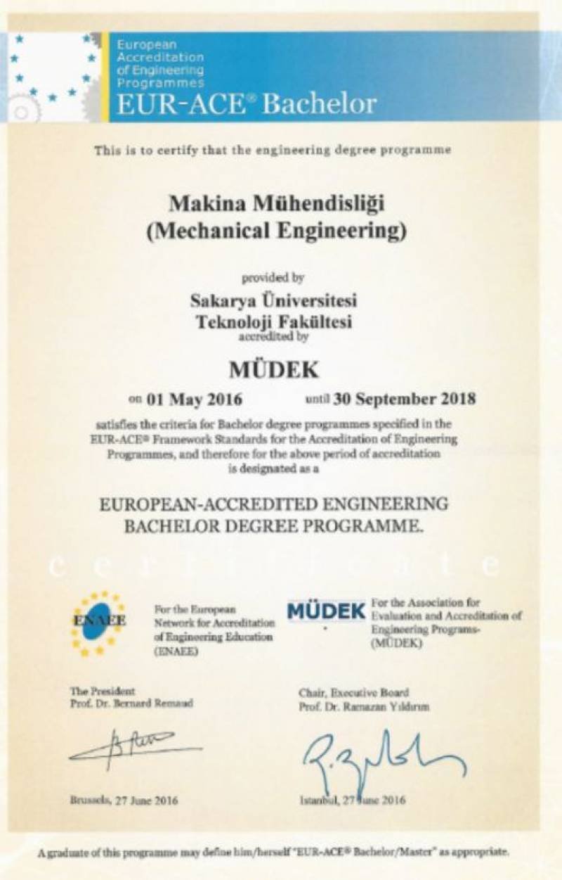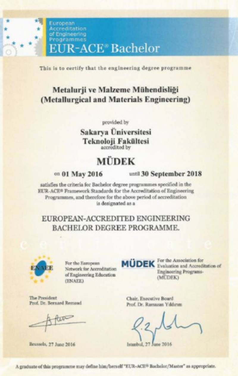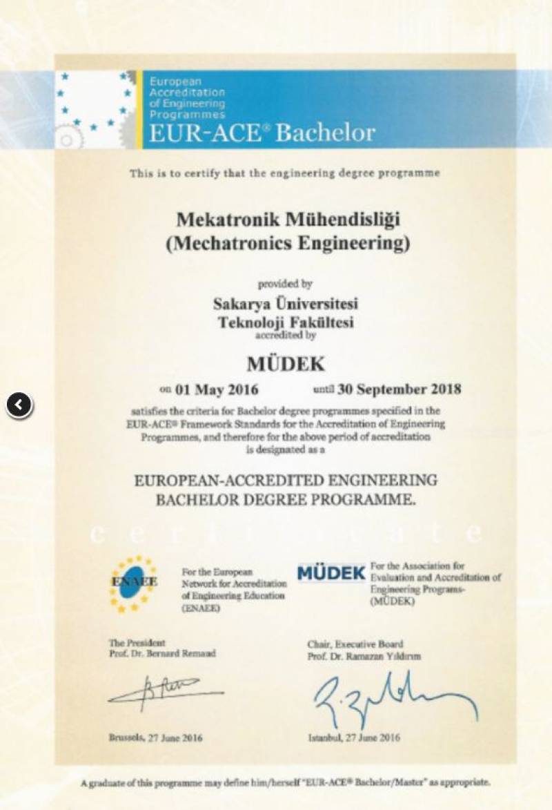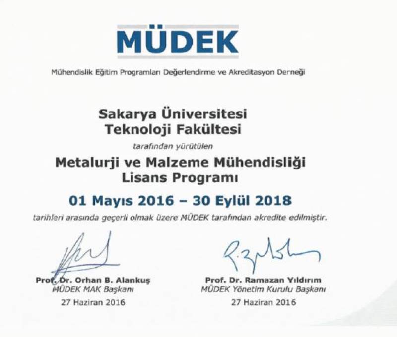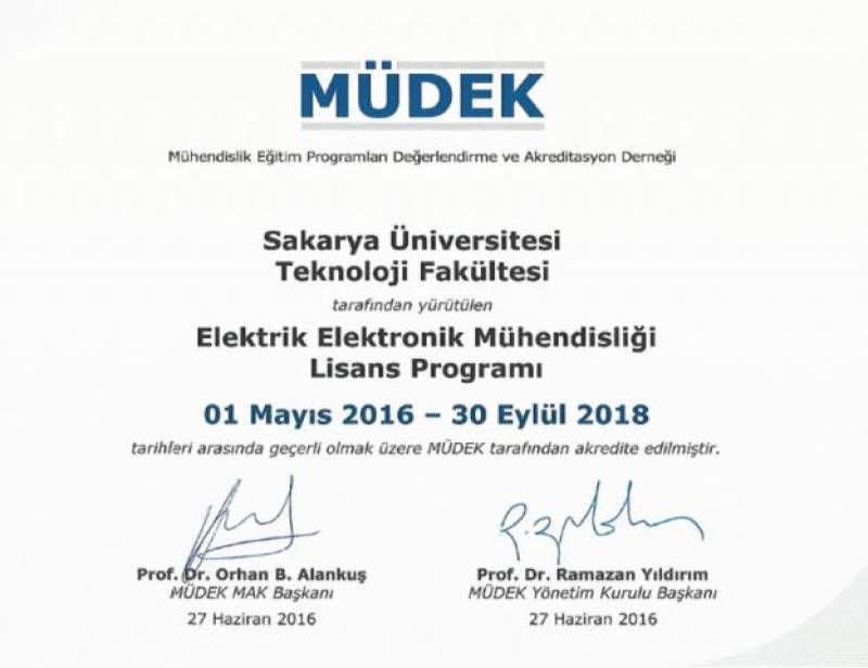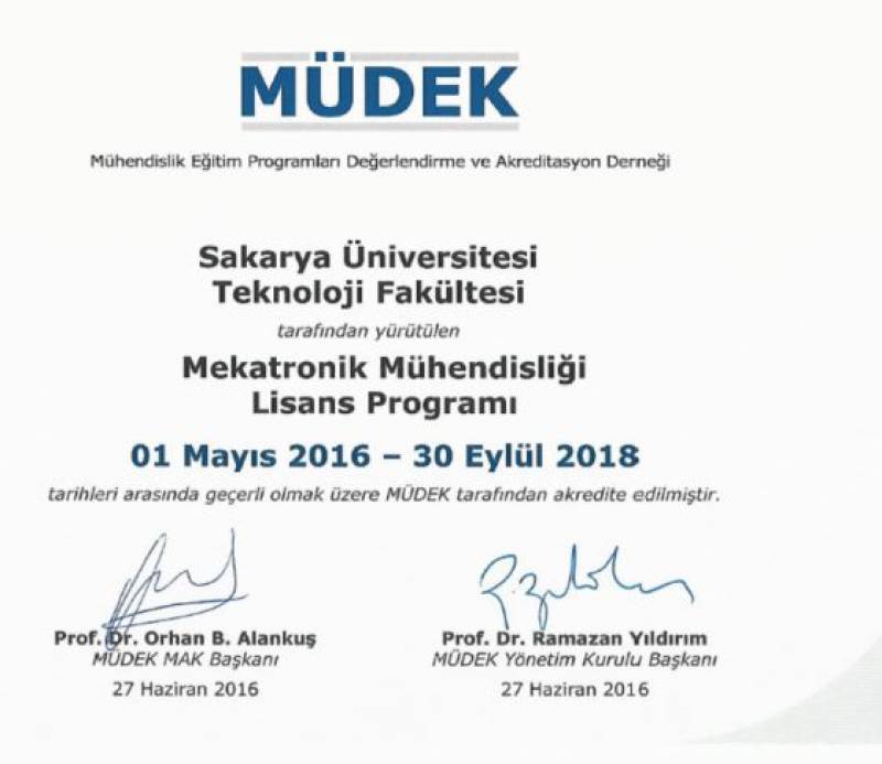 MÜDEK değerlendirme sonucunda, SAÜ Teknoloji Fakültesinin tüm bölümleri (Elektrik-Elektronik Mühendisliği, İnşaat Mühendisliği, Makine Mühendisliği, Mekatronik Mühendisliği ve Metalurji-Malzeme Mühendisliği) akredite olmaya hak kazandı.